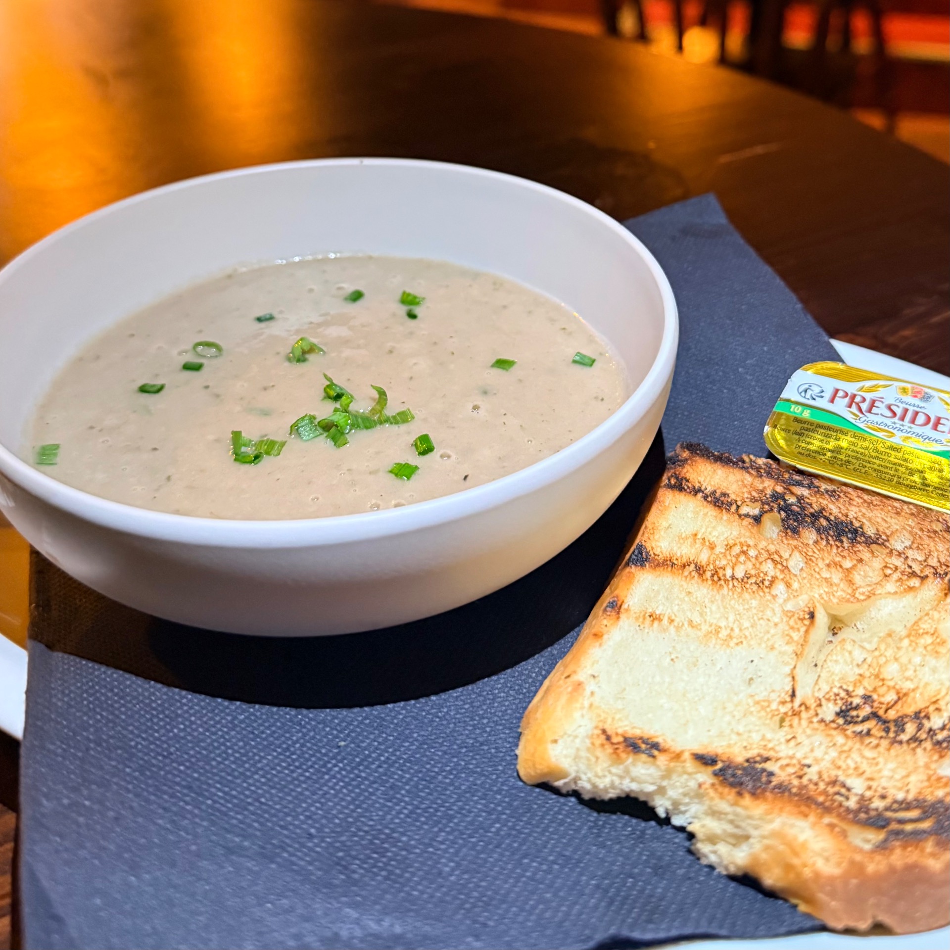 Zuppa del Giorno con Pane ai Cereali e Burro salato